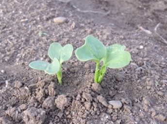 本葉1~2枚のころ、ダイコンシンクイムシ(ハイマダラノメイガ)