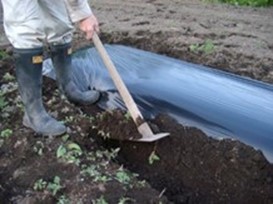 ※マルチフィルムは必ずしも必要はありませんが、利用することにより、雑草の防止、土壌水分の保持、雨水の跳ね上がり防止による病気感染の予防などの効果が期待できます。マルチフィルムを張る時は土が十分湿った状態の時が良い。(出来れば雨が降った翌日)